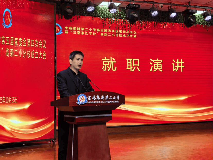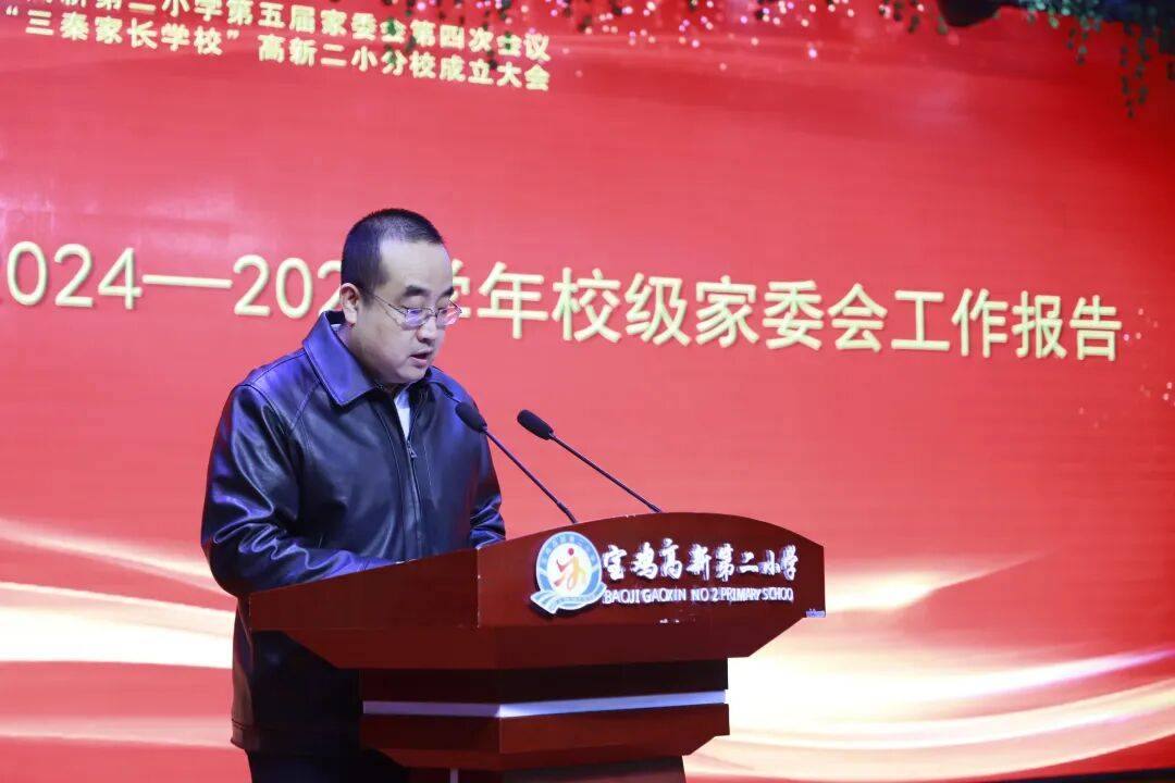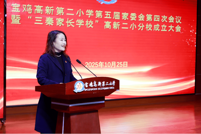 为深入贯彻落实“家校社协同育人”教育理念,构建权责明晰、优势互补的育人共同体,推动学校教育与家庭教育深度融合,10月25日上午9时,宝鸡高新第二小学隆重召开第五届校级家委会第四次会议暨“三秦家长学校”高新二小分校成立大会。校委会成员、教师代表及家长委员齐聚现场,共同开启家校协同育人工作的全新篇章,为助力学生全面发展、培养时代新人奠定坚实基础。会议由学校副校长冯晓华主持。